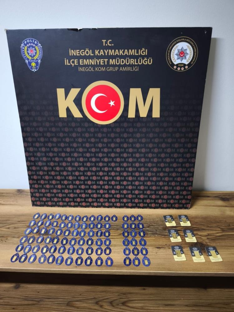 Bursa İl Emniyet Müdürlüğü Kaçakçılık ve Organize Suçlarla Mücadele Şube Müdürlüğü İnegöl KOM Büro Amirliği ekipleri, İnegöl'ün kuyumcular çarşısında faaliyet gösteren bir kuyumcuya sahte altın satıldığı bilgisi aldılar.