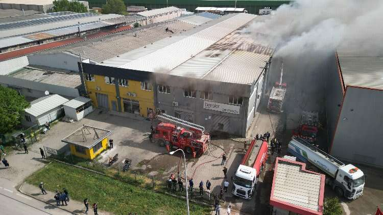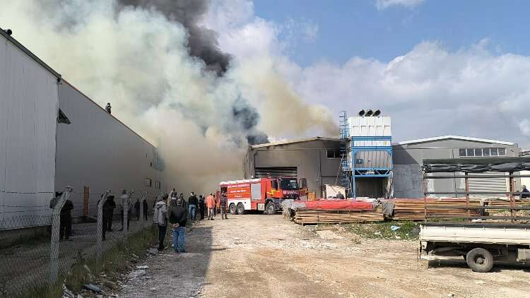 Bursa Büyükşehir Belediyesine bağlı ekipler, mobilya ürünlerinin imal edildiği fabrikada etkili olan ve dumanı ilçenin birçok noktasından görülen yangını söndürmek için çalışmasını sürdürüyor.