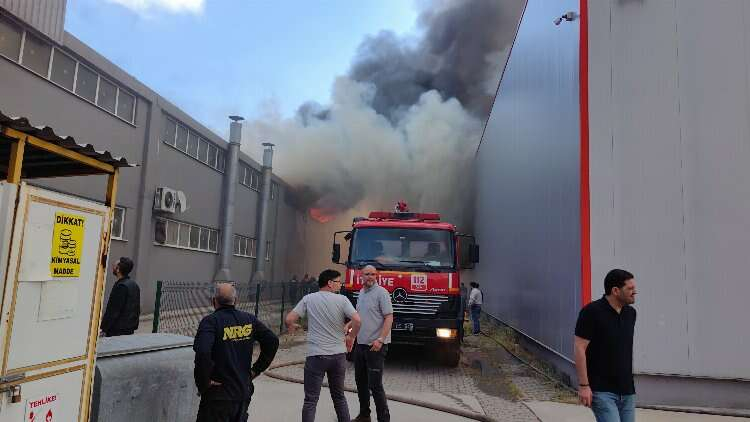 Fabrikada büyük çapta hasara yol açan yangının çıkış nedeni araştırılıyor.