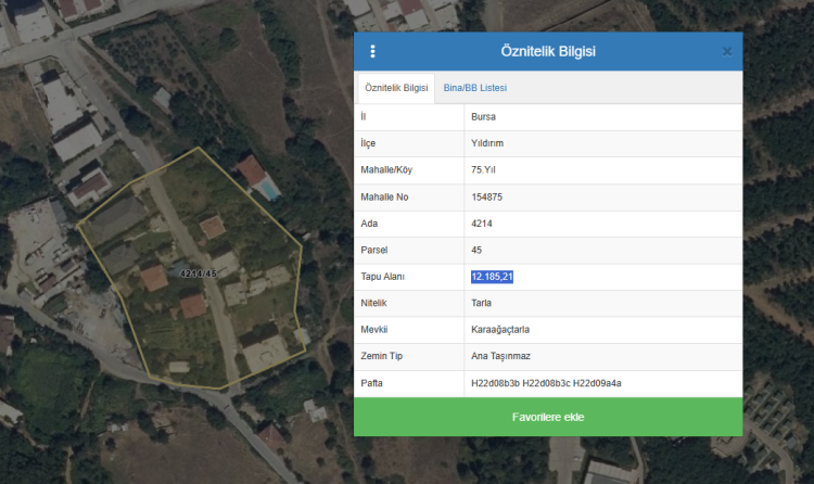 110. sırada 75. Yıl mahallesi 1177 ada 53 parseldeki 12 bin 185 metrekarelik tarla üzerindeki 480 metrekarelik alan yer alıyor.