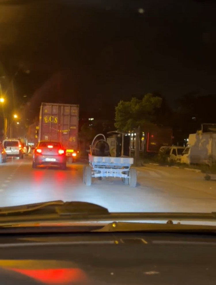 Trafikte başıboş seyreden at arabasını gören diğer sürücüler şaştı kaldı. Bir süre sahipsiz seyreden at arabası daha sonra ara sokaklara girerek gözden kayboldu.