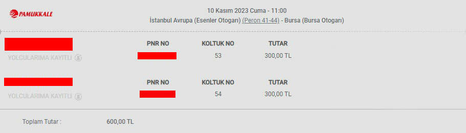 (Zamlardan önce Pamukkale firmasından satın alınan bir bilet örneği)