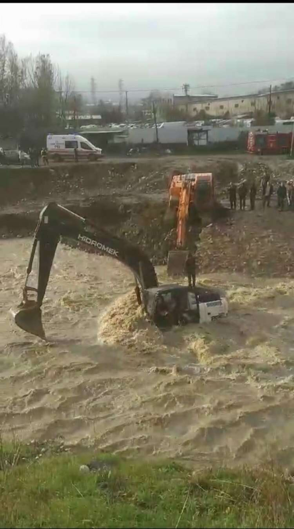 Derenin debisinin yükselmesi, altındaki toprağında yumuşamasıyla biranda kendini derenin ortasında bulan kepçe operatörü neye yapacağını şaşırdı.
