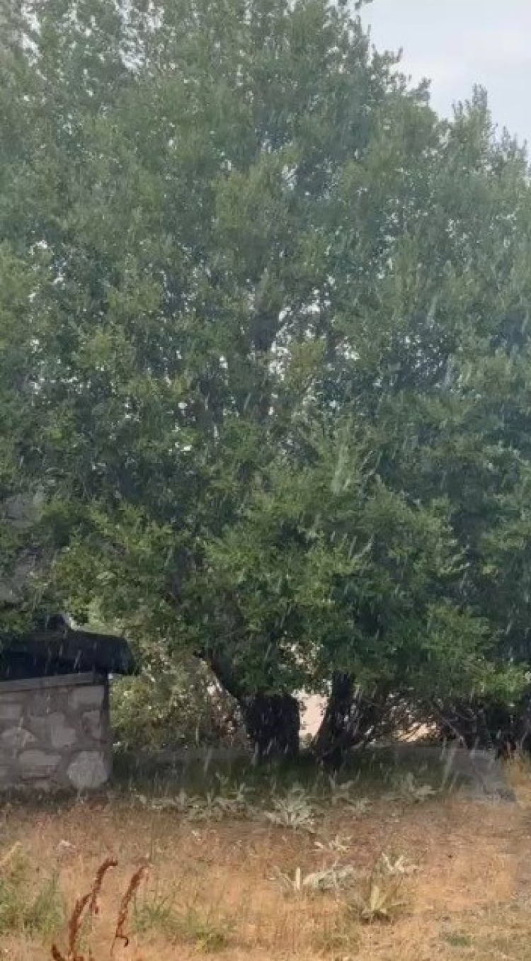 Yaklaşık 10 dakika süren yağış, aşırı sıcaklardan kavrulan doğadaki bitki ve ağaçları serinletti.