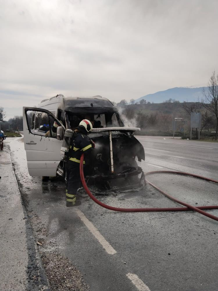 İnegöl'den Bursa'ya seyir halinde olan sürücü İbrahim K.(27) yönetimindeki 16 BIA 290 plakalı minibüsün motor kısmından dumanlar çıkmaya başladı.