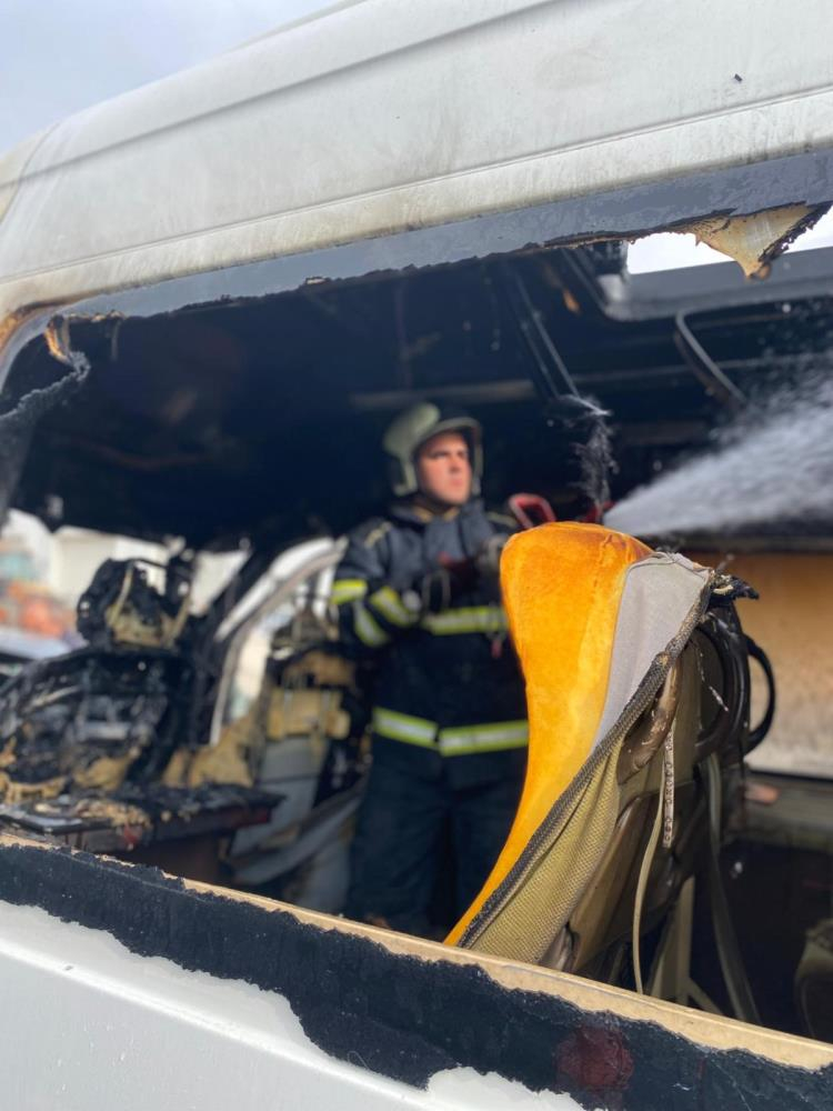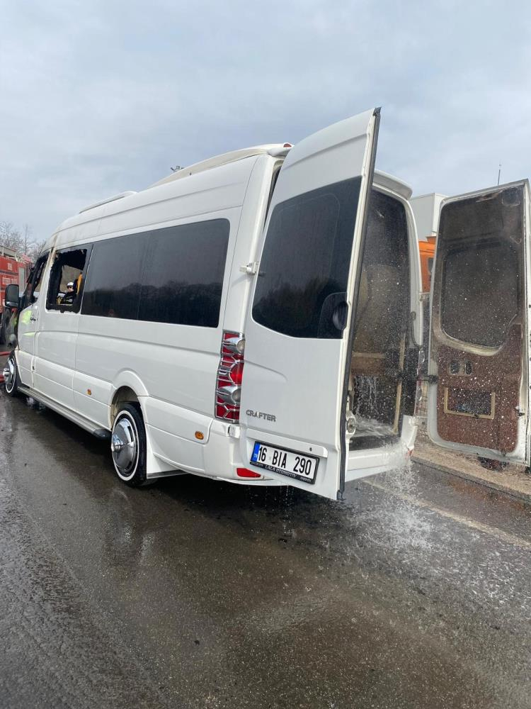 Bursa'da servis minibüsü alev alev yandı