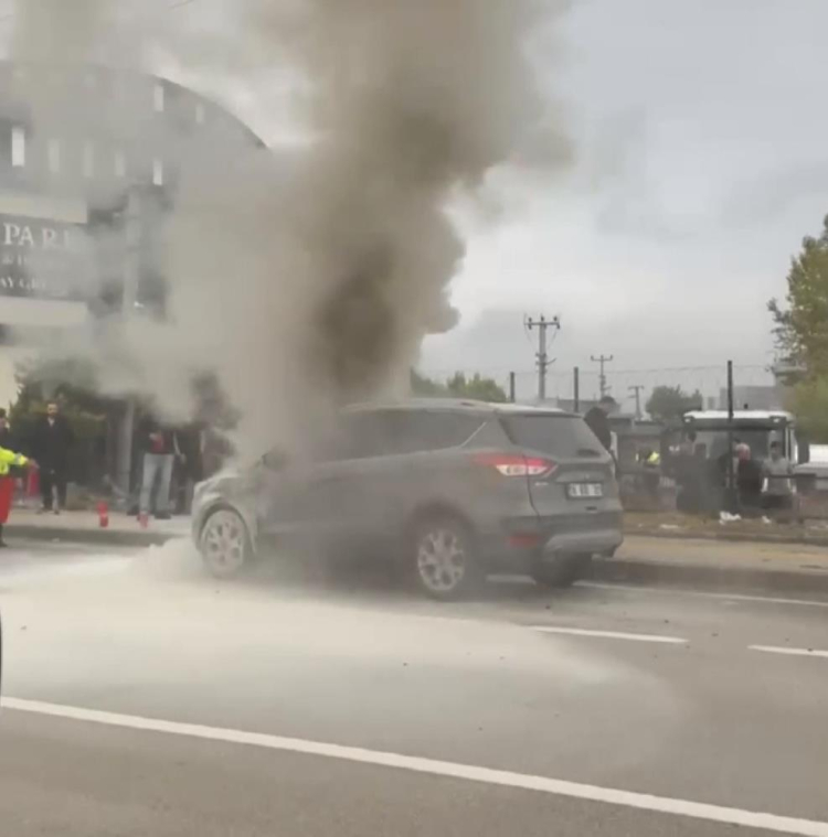 Bursa’nın Nilüfer ilçesinde seyir halindeki bir otomobilden dumanlar yükselmeye başladı. Sürücü, trafiği aksatmamak adına aracı yol kenarına çekerek hızla uzaklaştı.