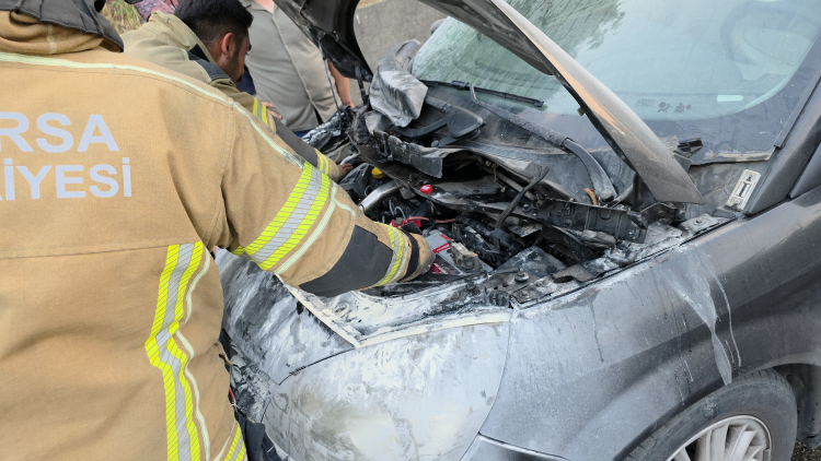 Bursa'da seyir halindeki araç yandı!