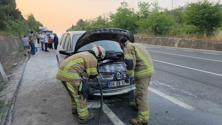 Sürücüsünün ismi henüz öğrenilemeyen 06 EB 5739 plakalı otomobil, Bursa-Ankara kara yolu Ümitalan mevkisinde motor kısmından yanmaya başladı.