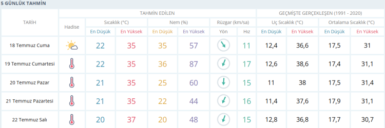 Şu anki tahminlere göre önümüzdeki 5 gün boyunca serinleme beklenmiyor. Yetkililer, sıcaklıkların Temmuz ayı boyunca yüksek seyretmeye devam edebileceğini ifade ediyor.