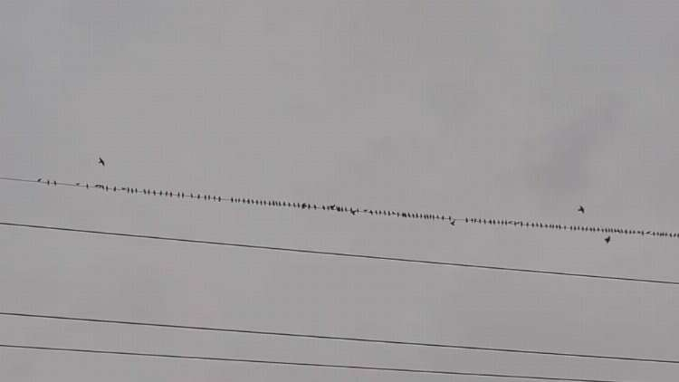Elektrik direklerine ve tellerine konan yüzlerce sığırcık kuşu görsel şölen oluşturdu.