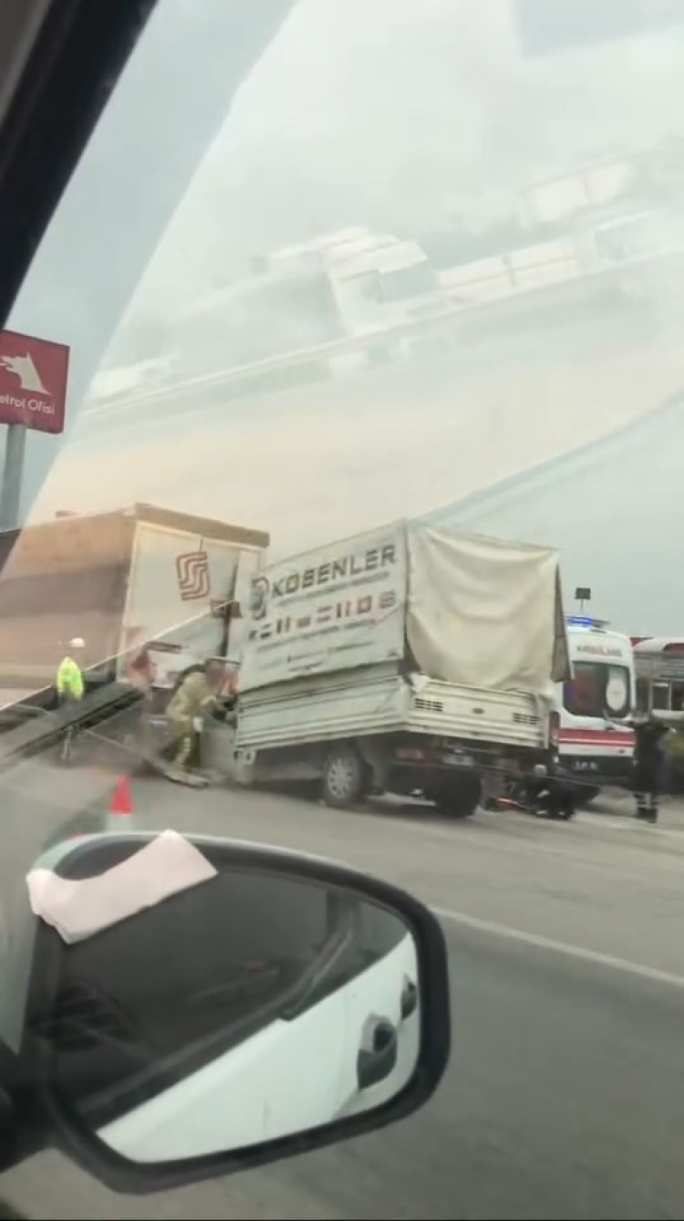 Bursa'da tıra arkadan çarpan kamyonet sürücüsü kabinde sıkıştı. Sürücüyü, itfaiye ekipleri kurtardı.