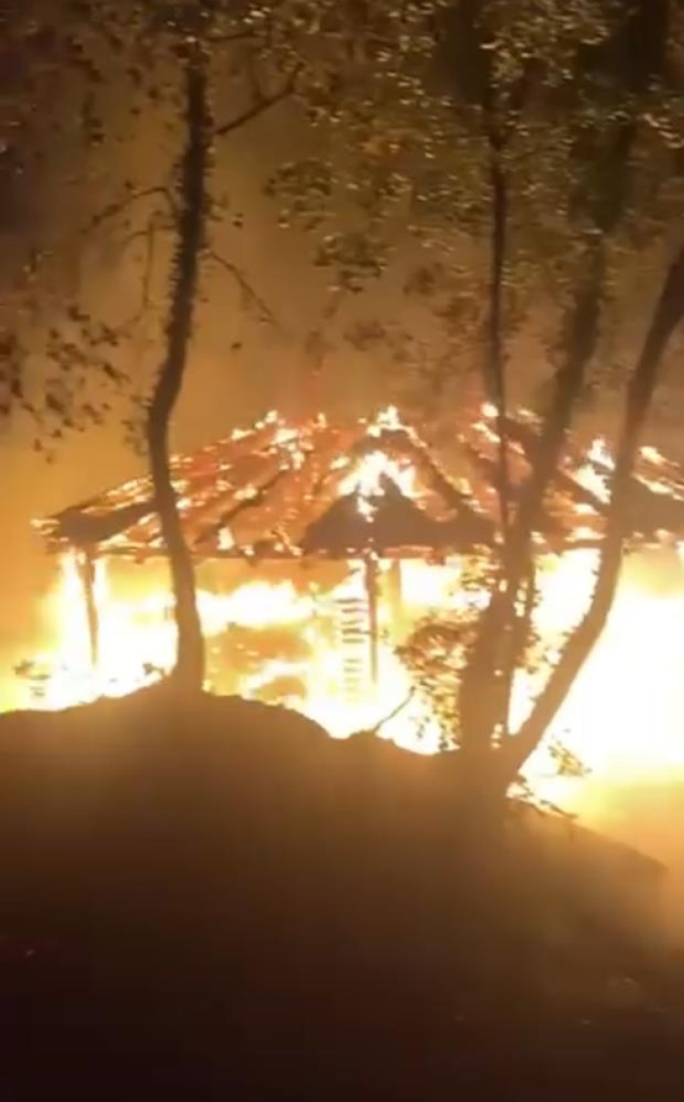 Bir süre sonra alevler çevredeki çardağa sıçradı ve kısa sürede büyüyerek çardağı tamamen sardı.