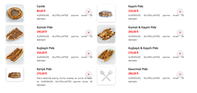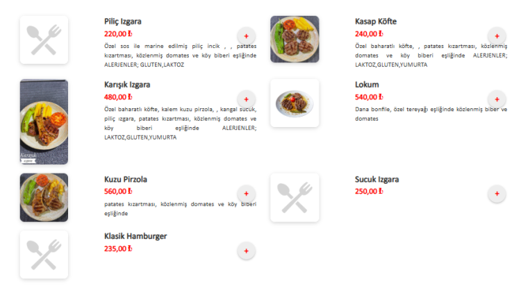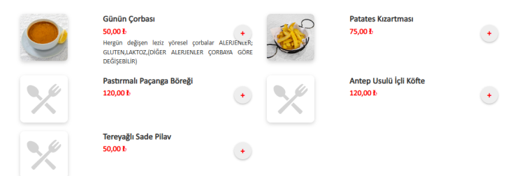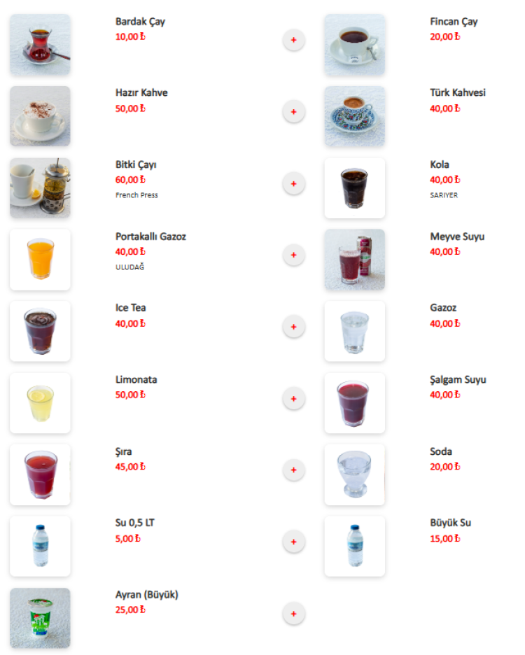 Menülerde yer alan ürünlerden bazılarındaki fiyat artışı ortalama olarak şöyle gerçekleşti: