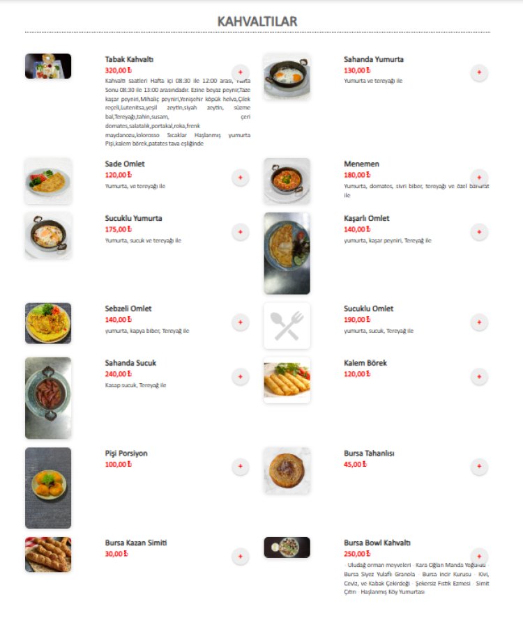 Tabak kahvaltı 280 TL’den 320 TL’ye, pazar günleri bazı tesislerde sunulan açık büfe kahvaltı ise 520 TL’den 580 TL’ye çıkarıldı.