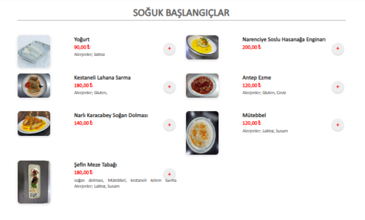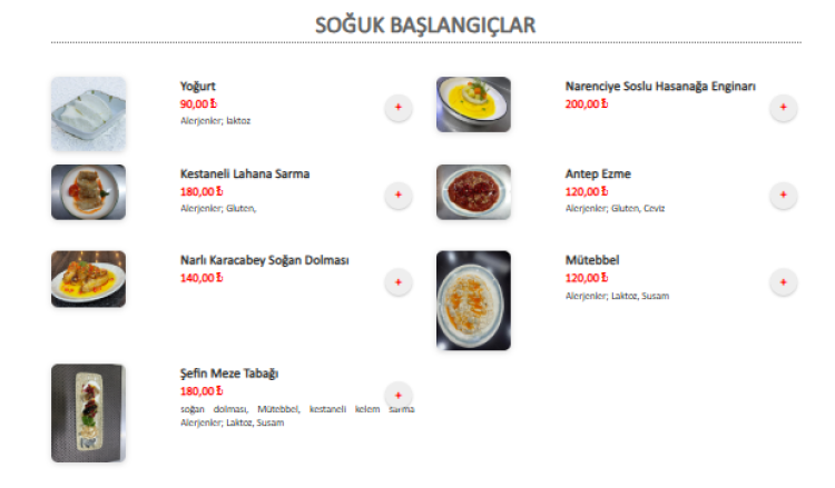 Güncellenen menüyle birlikte yüzde 15’ten yüzde 100’e varan zamlar dikkat çekti.