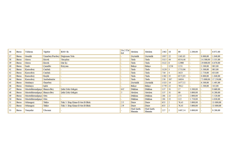 54'ü Bursa'da toplamda 68 adet vakıf taşınmazı 2886 sayılı Kanunun 45. maddesine göre (Açık Teklif Usulü) ihale edilecek.