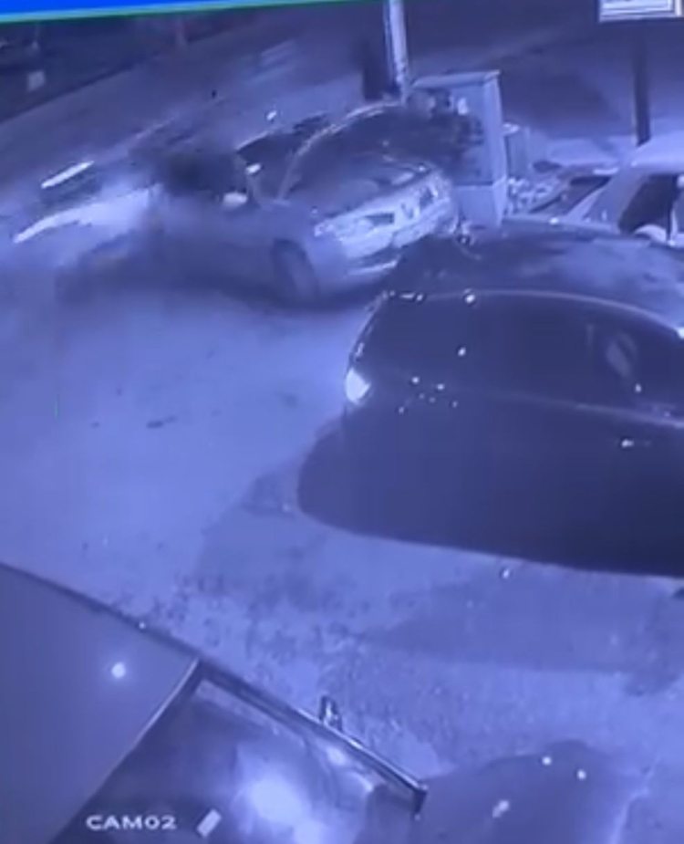 Bir usta, oto tamir dükkanı önünde bir otomobilin motorunu tamir etmeye başladı. O sırada sürücüsünün direksiyon kontrolünü kaybettiği bir otomobil hızla gelerek, tamir edilen otomobile çarptı. Usta, ani bir refleksle geriye doğru kaçıp, yaralanmaktan son anda kurtulurken, o anlar işyerinin güvenlik kamerasına yansıdı.