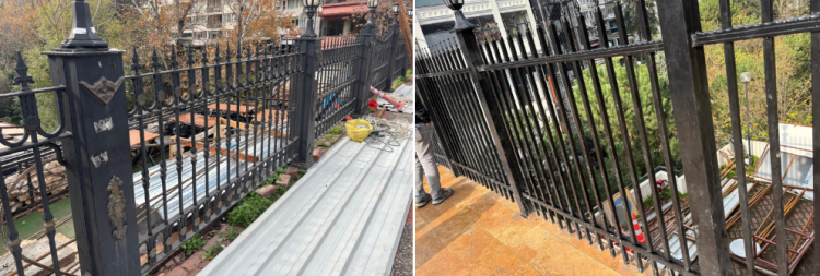 (Soldaki fotoğraf: eski korkuluklar, sağdaki fotoğraf: yeni korkuluklar)