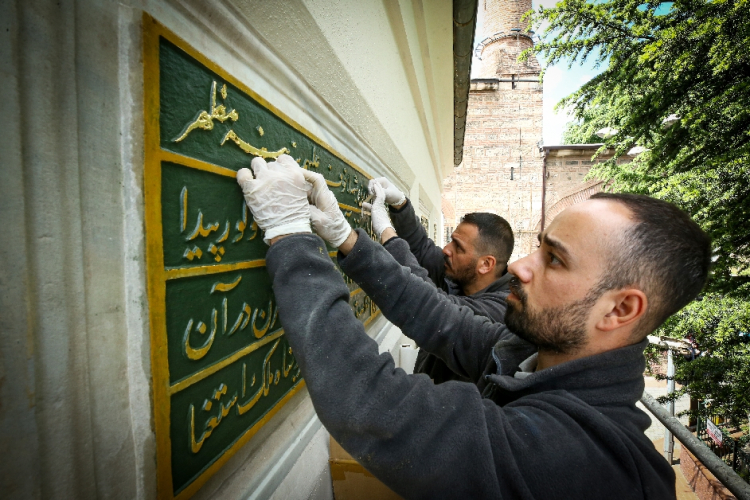 İki nakkaş, dikkat ve sabır gerektiren bu sanatı son olarak Kültür ve Turizm Bakanlığı Vakıflar Genel Müdürlüğü tarafından, Bursa'nın simgelerinden Aziz Mahmud Hüdayi'nin şeyhi, mutasavvıf, şair Mehmed Muhyiddin Üftade'nin türbesinin kitabesindeki restorasyon işinde icra ediyor.