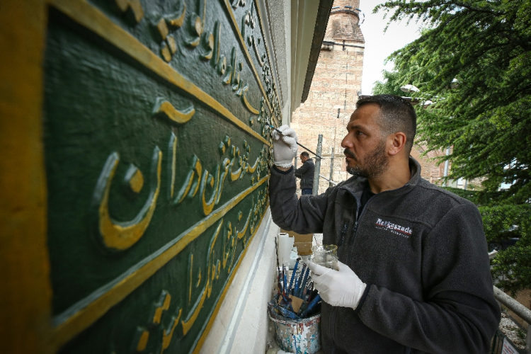 Bursa'da tarihi mekanlar ve camiler iki nakkaşın motifleriyle süsleniyor