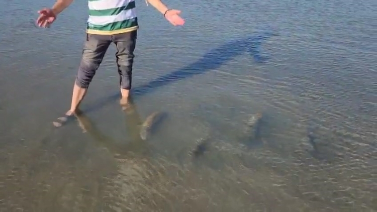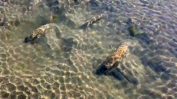 Yüzmek için suya giren vatandaş, suların çekildiği noktada çok sayıda büyük boyutta bir taş olduğunu fark etti.