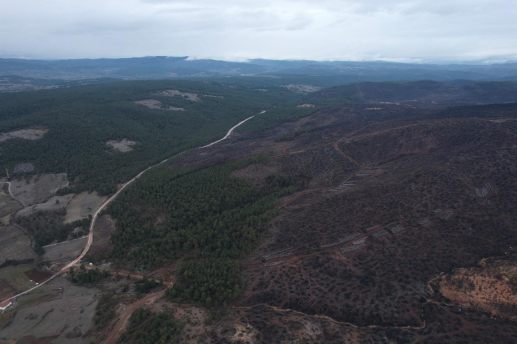 Bursa'da yakın tarihin en büyük orman yangınlarından birisi olan ve yaklaşık bir hafta süren Temmuz ayındaki Harmancık yangınında 6 bin futbol sahası büyüklüğünde 4 bin 240 hektar orman küle dönerken, burada yaralar kısa sürede sarıldı. Aralık 2025'te yanan alanların yeniden yeşillendirilmesi için tohum atma, teras oluşturma ve fidan dikim çalışmalarında devasa işler yapıldı. Harmancık'ta Bursa'dan İtalya'ya uzanacak mesafe kadar yani 2 bin 327 kilometre teras ilmek ilmek işlendi. 1 milyon 617 bin 921 fidan toprakla buluşturulurken, 17 bin kilogram tohum ekildi. Bölgedeki son durum ise İHA ekibi tarafından dron ile havadan görüntülendi.