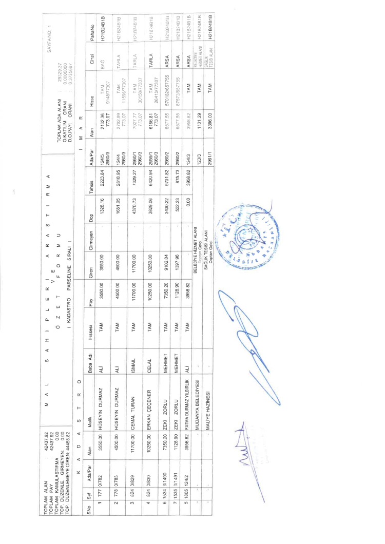 İşte söz konusu parseller ve dağıtım cetvelleri...