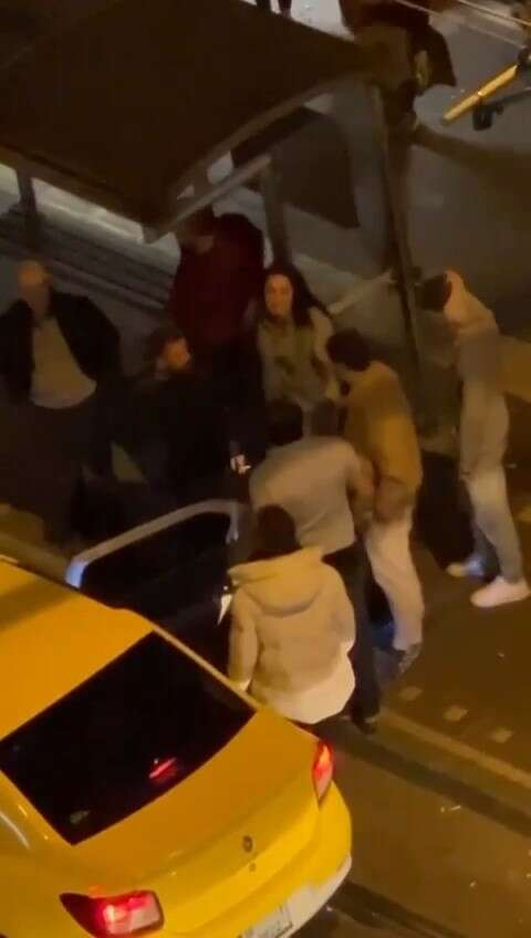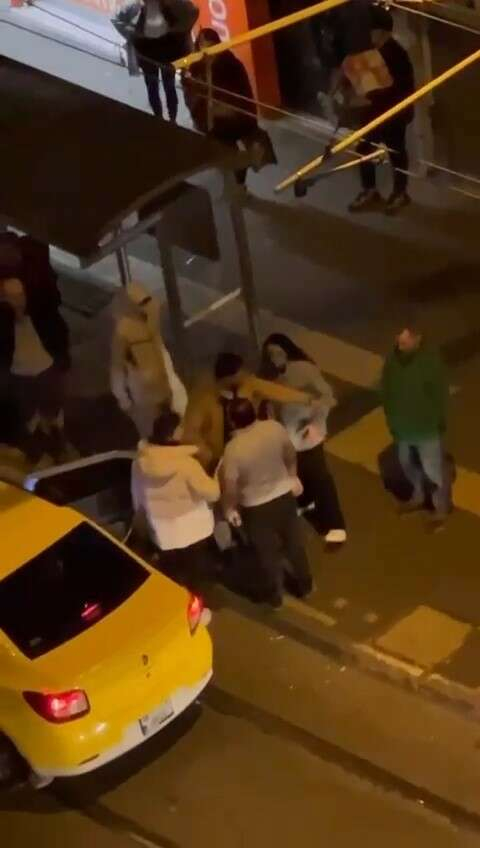 Çevredekilerin müdahalesiyle sakinleştirilmeye çalışan kadın güçlükle ikna edilirken, sakinliği koruyan adam ise kameralara anbean yansıdı.