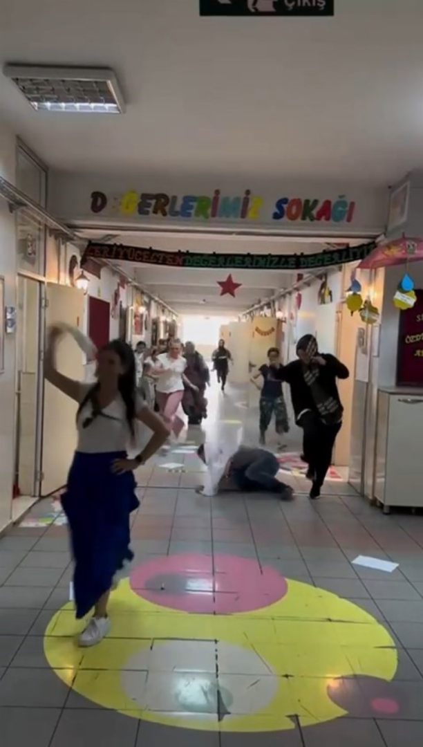 Şehit Piyade Onbaşı Orhan Tezcan İlkokulu öğretmenlerinin son ders ziliyle sınıflardan koşarak çıkması ise izleyenleri gülümsetti.