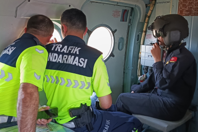 Bursa'da tatil trafiğine jandarmadan helikopterle denetim!
