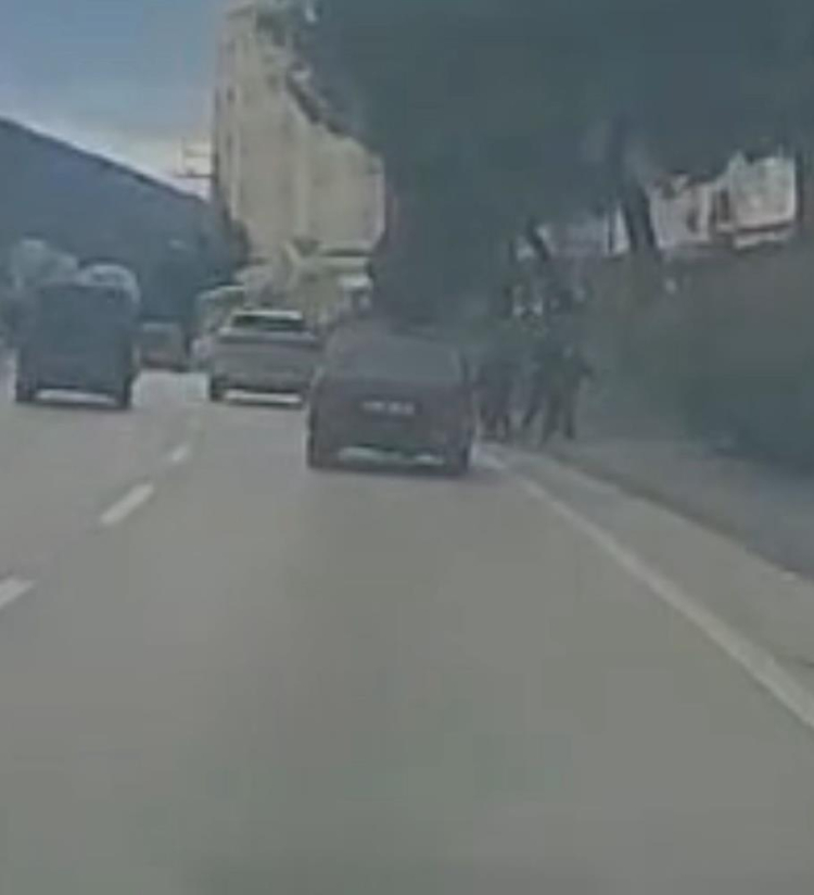 Yaşanan tehlikeli anlar trafikteki başka bir aracın kamerasına saniye saniye yansıdı.