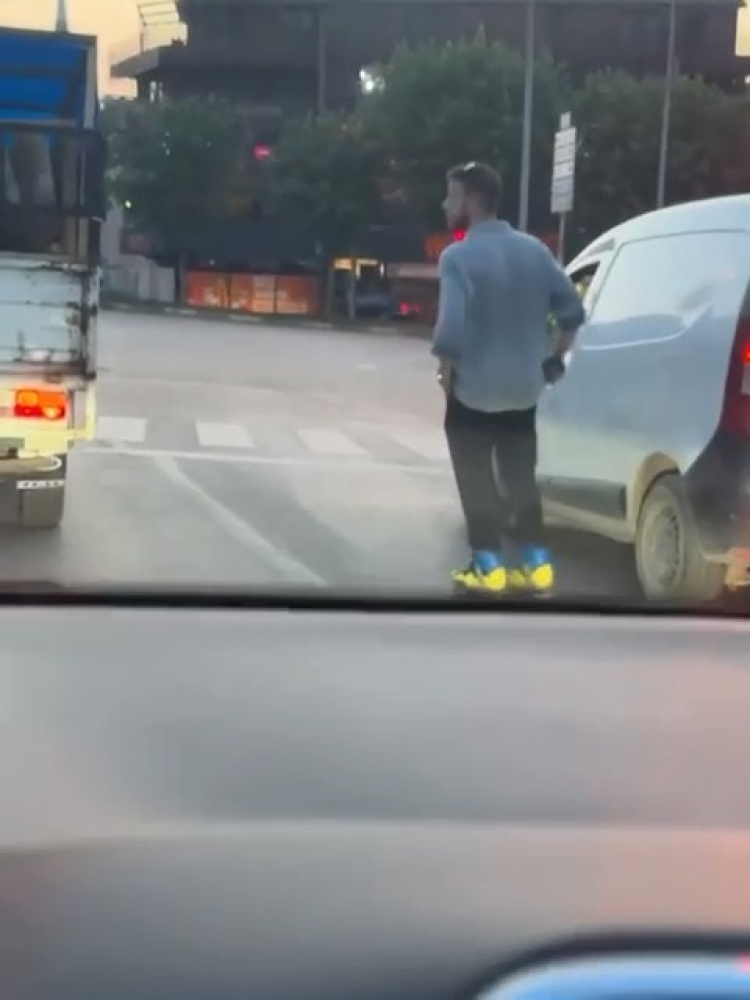 Tehlikeli anlar saniye saniye amatör kameraya yansırken, genç ise ışıkta bekleyen kamyonetin ilerlemesini de bekledi.