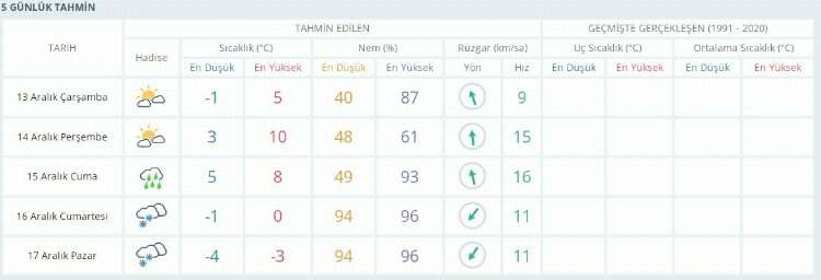 Uludağ Kayak Merkezi'ndeki en düşük ve en yüksek hava sıcaklık tahminleri ise şöyle: