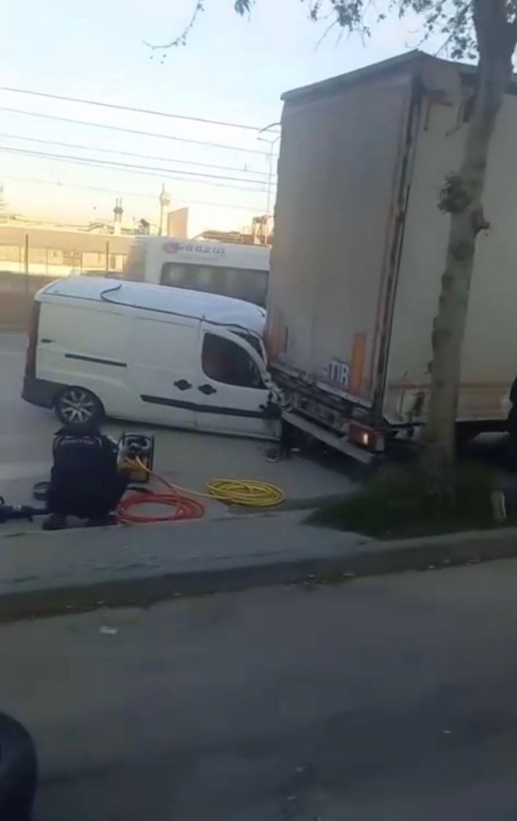 Mudanya yönüne giden hafif ticari araç, sürücüsünün direksiyon kontrolünü yitirmesi sonucu, yol kenarında park halinde olan TIR'a arkadan çarptı.