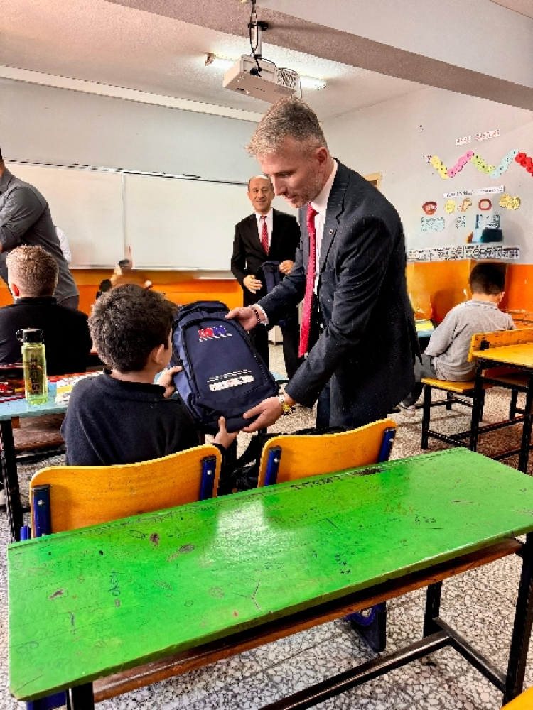 Programda, öğrencilere çanta ve kırtasiye setleri dağıtıldı.