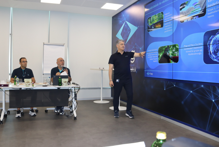 TOGG’un Gemlik’te kurulu Fabrikasında gerçekleştirilen ve yarım gün süren ziyarette, M. Gürcan Karakaş, Yönetim Kurulu Üyeleriyle tek tek tanıştıktan sonra, TOGG’un kuruluş hikayesi ve hedefleri hakkında bir sunum gerçekleştirdi.