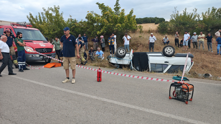 Sungurpaşa Mahallesi Soğukdere mevkisinde, Havva G. (38) idaresindeki 16 EF 682 plakalı otomobil, seyir halindeyken sürücüsünün direksiyon hakimiyetini kaybetmesi sonucu şarampole devrildi.