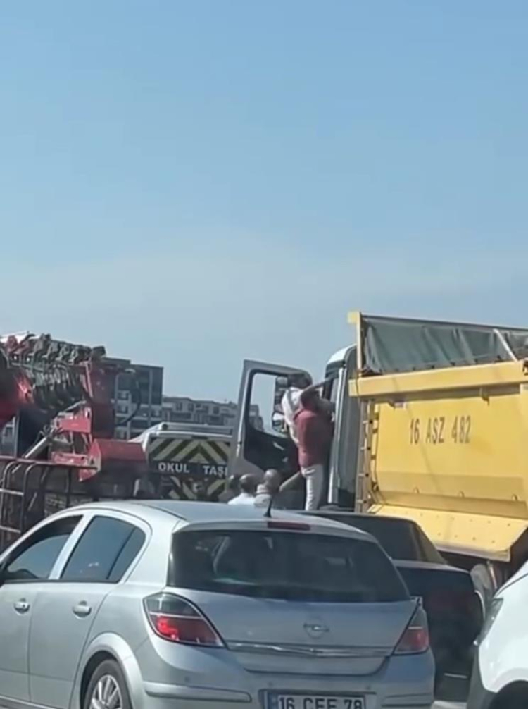 Bursa'da trafikte kamyon sürücüsünü darp ettiler! Tartışma büyüyünce...