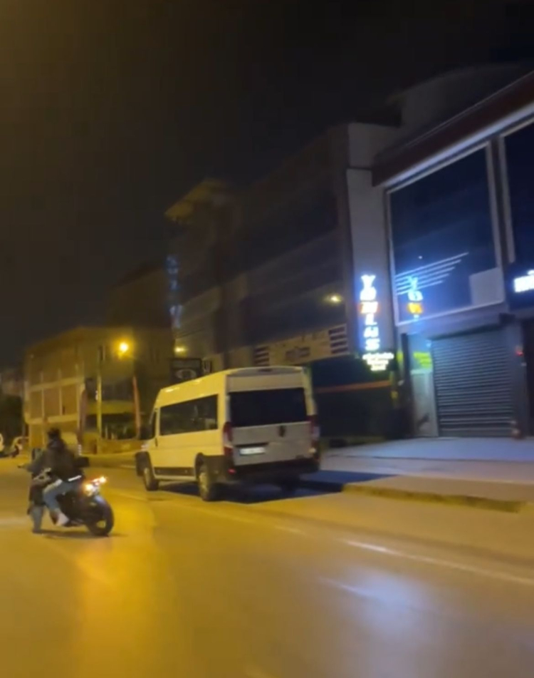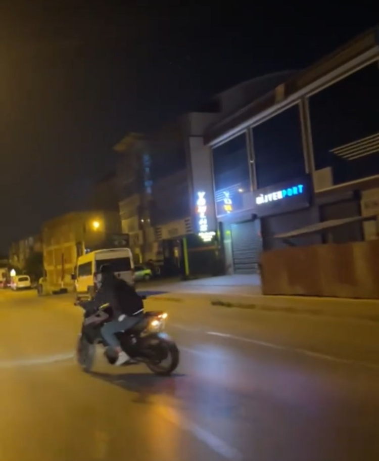 Bursa’da, bir sürücünün motosikletiyle drift atarak ilerlediği anlar, başka bir sürücü tarafından cep telefonuyla görüntülendi.