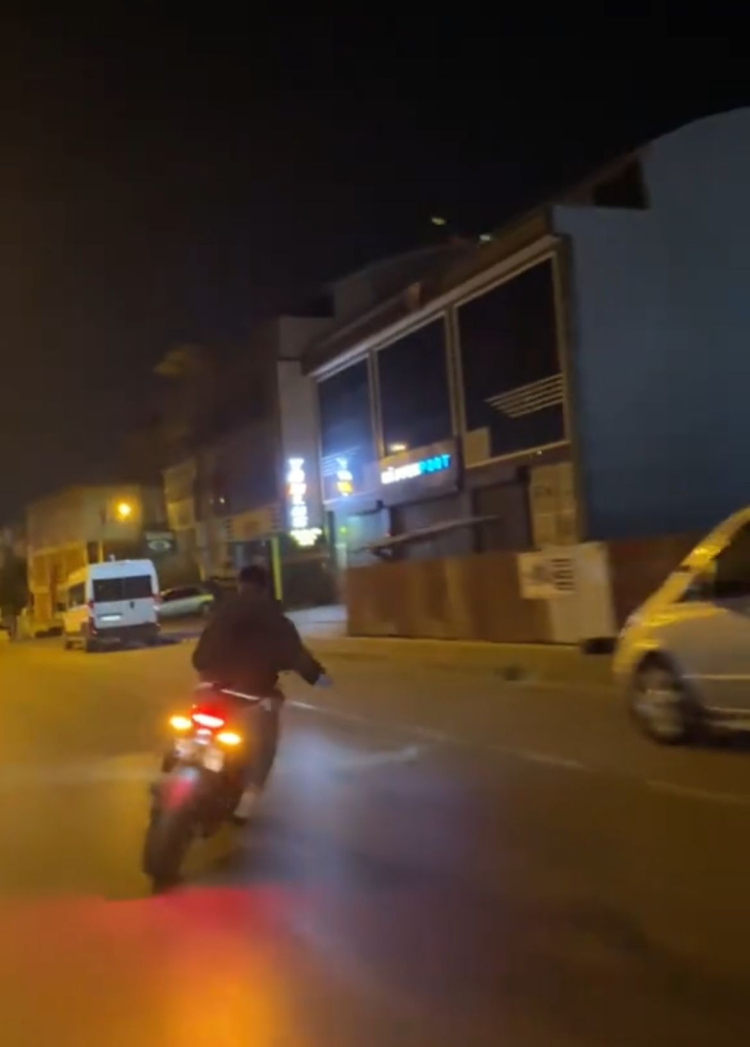Görüntülerde, motosikletin yol ortasında defalarca kaydırıldığı anlar yer aldı.