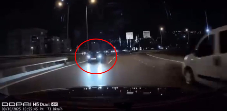 Bursa’da, otomobiliyle ters yönde ilerleyen sürücünün trafiği tehlikeye attığı anlar başka bir otomobilin araç kamerasına yansıdı.