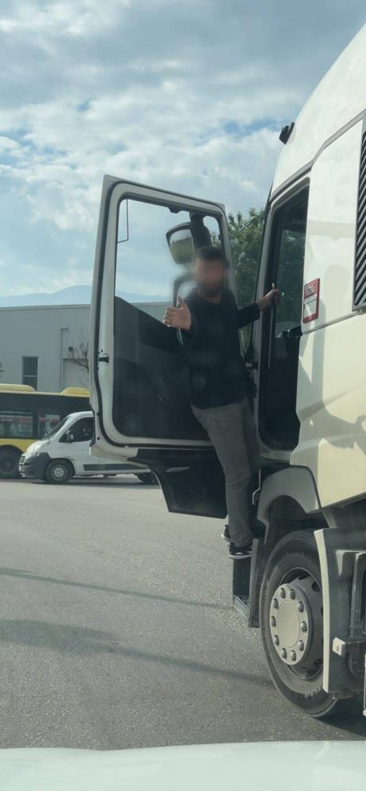 Bursa'da trafikte tır sürücüsü dehşet saçtı! Yetmedi bir de el hareketi yaptı...