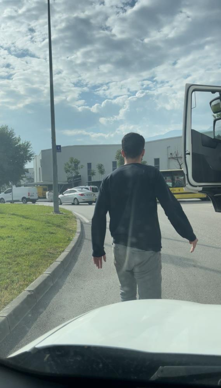 Bursa'da bir otomobil sürücüsü kavşağa hızla girdiği iddia ettiği tır sürücüsüyle tartışma yaşadı "Sen katil misin, nasıl bir hızla gidiyorsun?" diye tepki gösterdi. Tır sürücüsü trafikte aracından inip otomobil sürücüsünün üzerine yürüdü. Otomobil sürücüsü aracını kilitleyip o anları kayda aldı. Kavşakta duran tır sürücüsü aracına binerken el hareketi de yaptı.