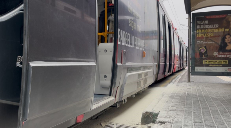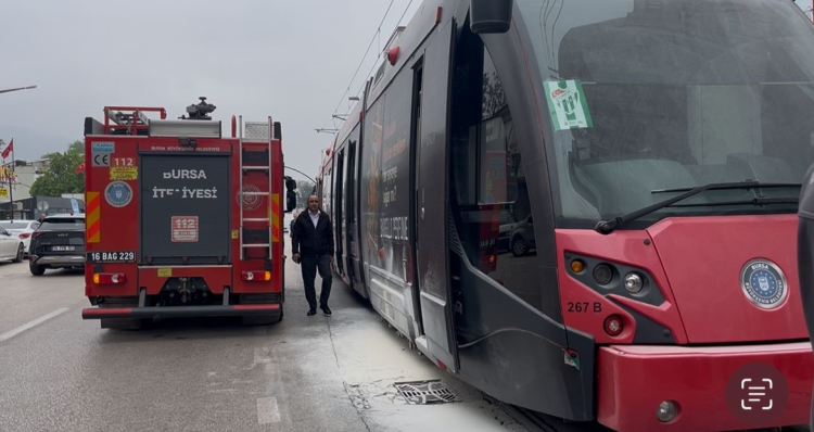 Bursa'da seyir halindeki tramvayda çıkan yangın korku dolu anlar yaşandı.