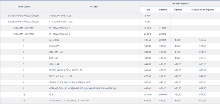 Bursa Büyükşehir Belediyesi'nin ulaşım iştiraki BURULAŞ'ın toplu taşıma ücretlerine yaptığı zamların oranları belli oldu. İşte kısa-uzun, özel ring ve besleme hat otobüslere, tramvay ve metrolara gelen zammın oranı...