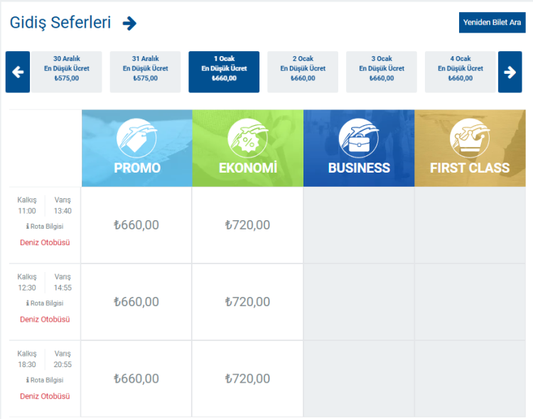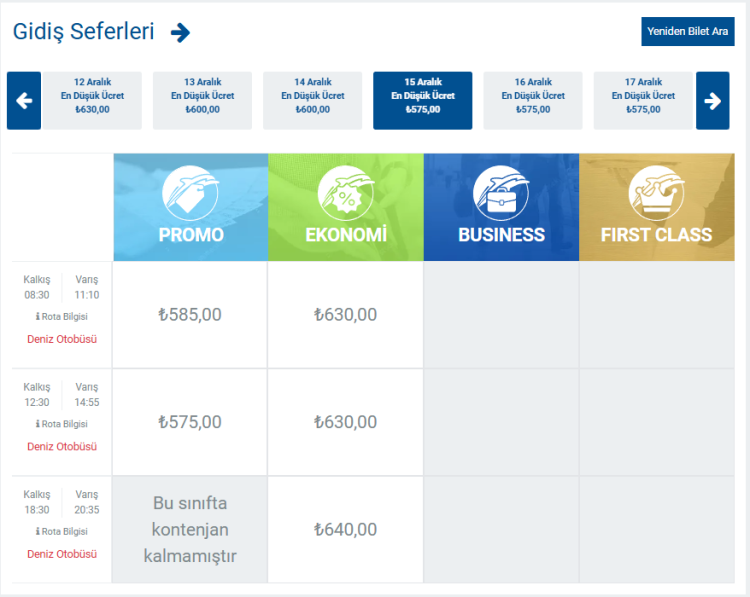 (İDO'nun Aralık ayı bilet fiyatları)