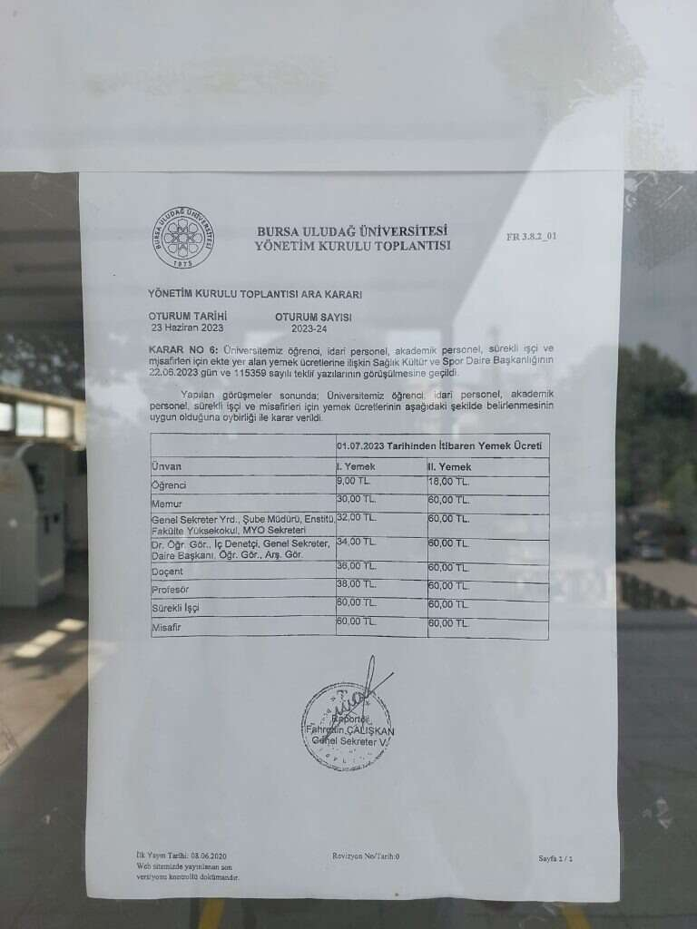 Bursa'da Uludağ Üniversitesi'nde yeni dönem zamlı başladı. Üniversitede yeni dönem yemekhane öğün fiyatları zamlandı.