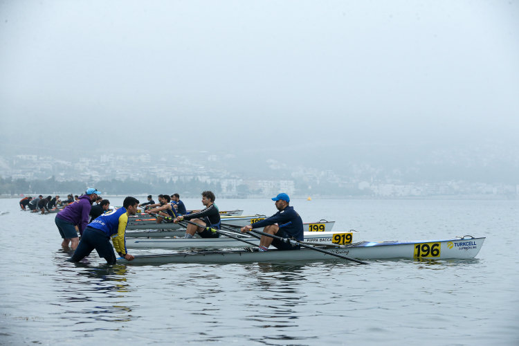 Gemlik Kumsaz Plajı'nda düzenlenen organizasyonda denize açılan ekipler, 4 bin metrelik parkurda yarışıyor. Uzun mesafe yarışlarında şampiyon olabilmek için 12 şehirden 38 kulüp 522 sporcu kıyasıya mücadele ediyor.