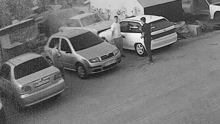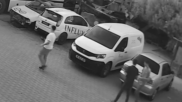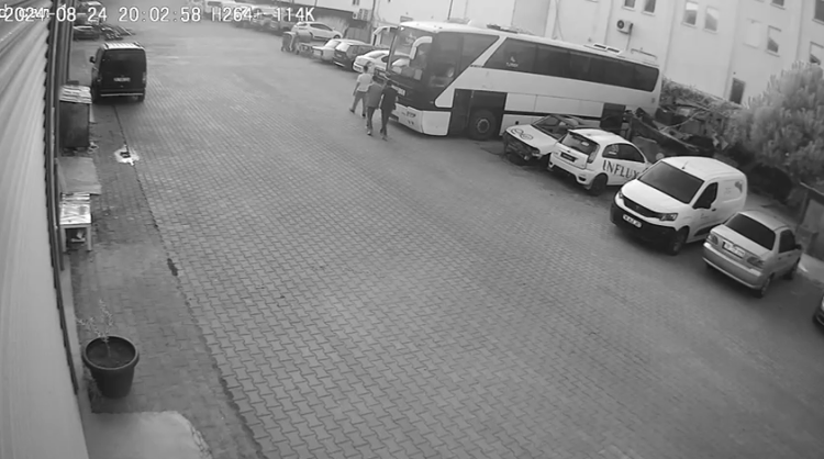 Saat 19.30 sıralarında kimliği belirsiz üç kişi otoparkta bulunan bir aracın bagaj kapağını açarak içinde bulunan yangın tüpünü aldı.